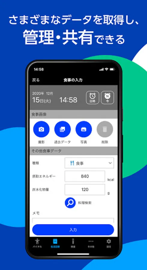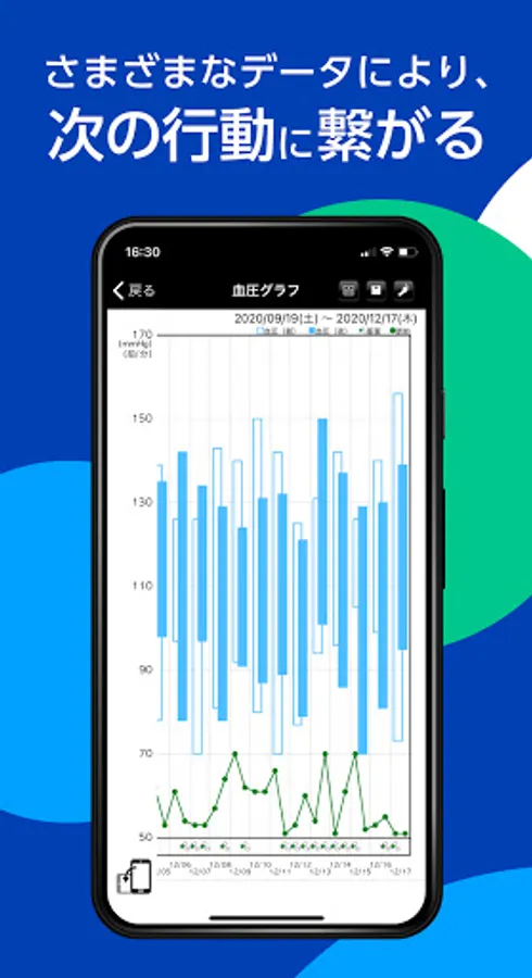 For everyone who wants to manage PHR (Personal Health Records) efficiently and effectively in their daily lives. By inputting not only vital data such as blood pressure, weight, and blood sugar level, but also data such as medicine, diet, and exercise, each relationship can be visualized in a graph / table format for more effective medical treatment guidance and self. Contributes to maintaining management motivation.
