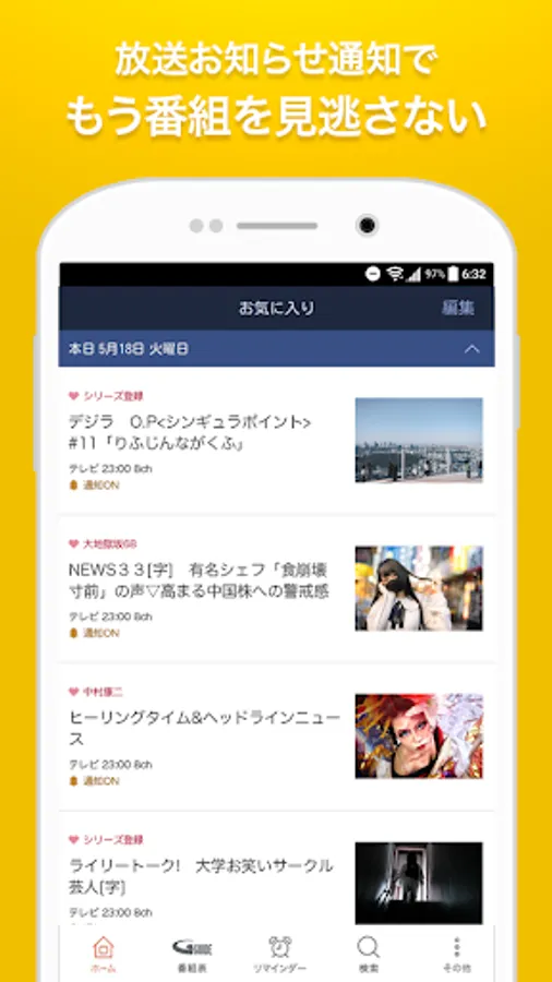 In addition, you will not receive pre-broadcast notifications (push notifications) for programs on broadcast waves that are turned off. Please set according to your preference.