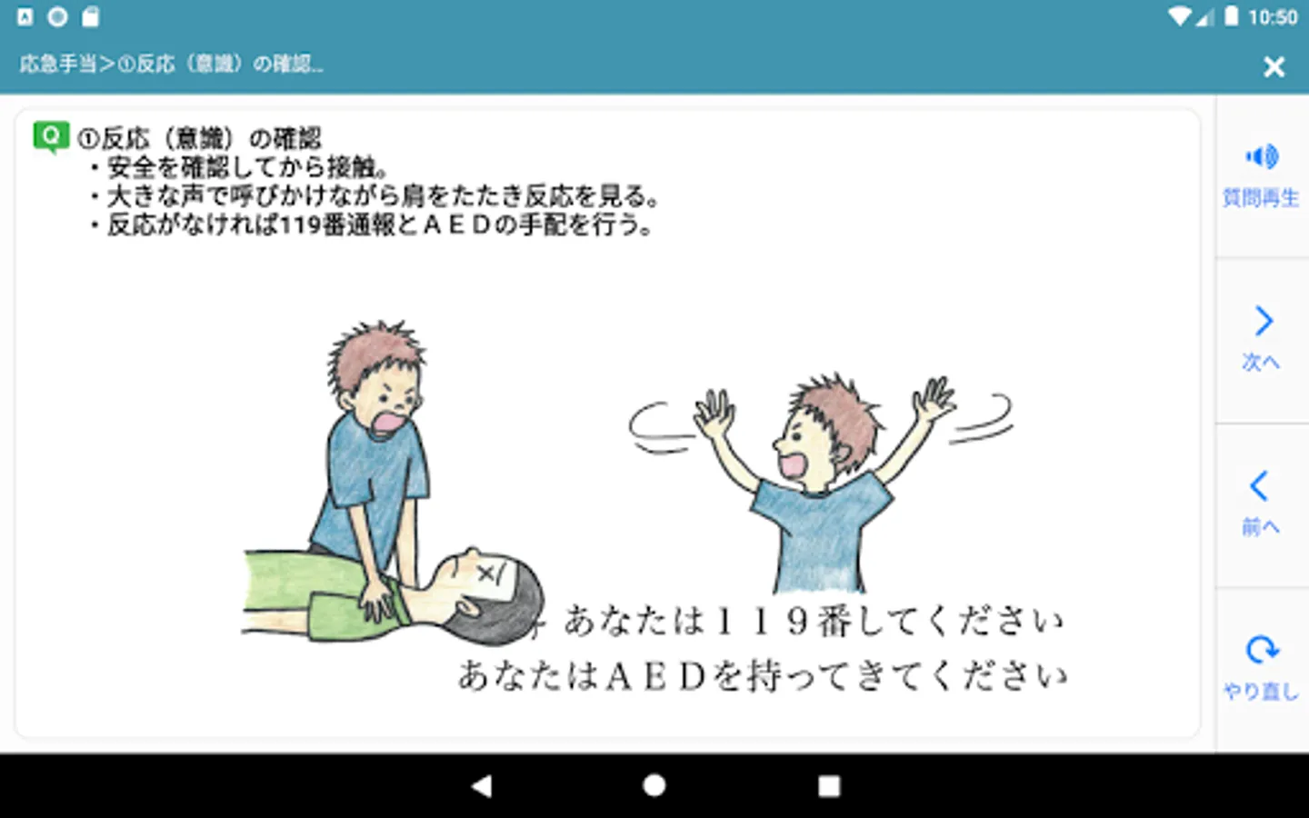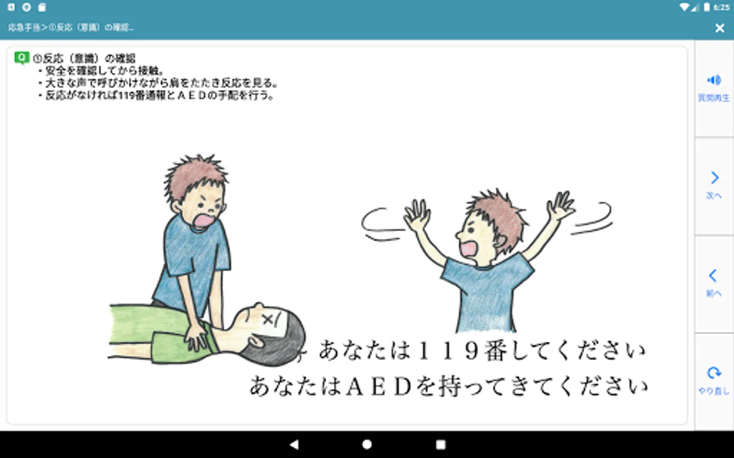 そこで、お客様から応急手当を行ううえで必要な情報を得たり、応急手当の手順を紹介するアプリケーションです。