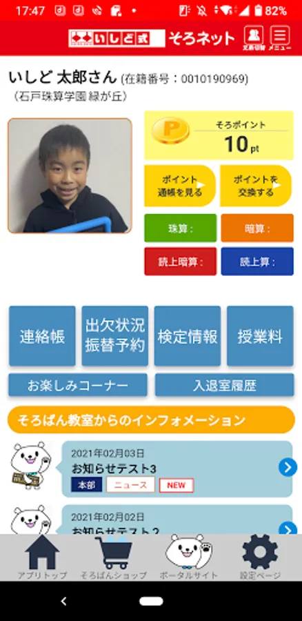 With the Ishido-style official app, you will receive push notifications when you receive important information from the abacus classroom or when the teacher in the classroom contacts you.