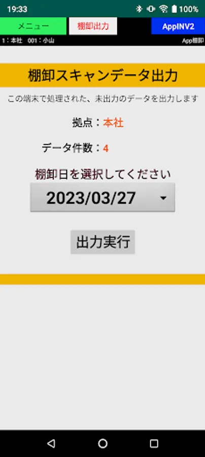 *The date and location are the date and location specified on the "Inventory scan data output" screen.