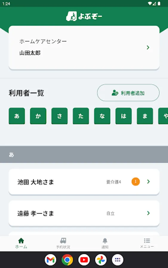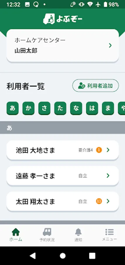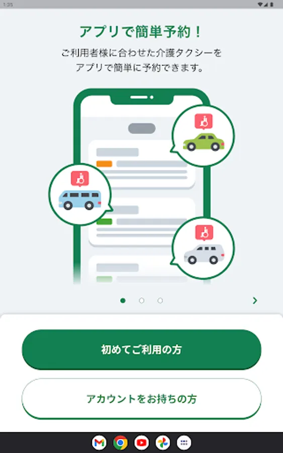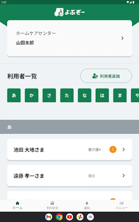 Yobuzo is a service that allows you to reserve a nursing care taxi by simply specifying the place you want to go and the date and time from the smartphone app.