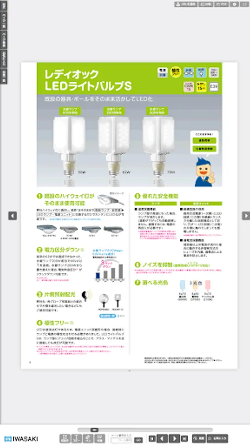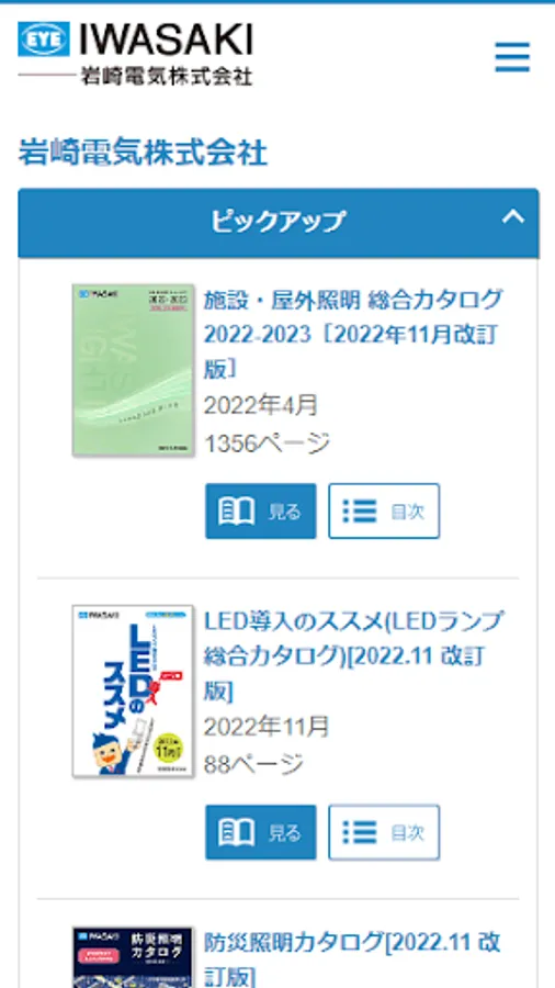 It is an application for quickly browsing Iwasaki Electric's digital catalog from a smartphone.