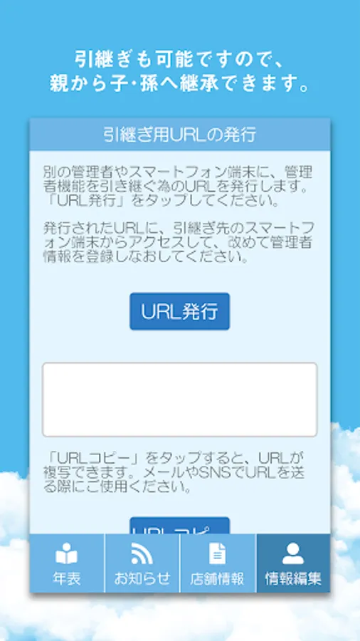 作成した情報は引継ぎも可能ですので、親から子へ、代々継承ができます。
