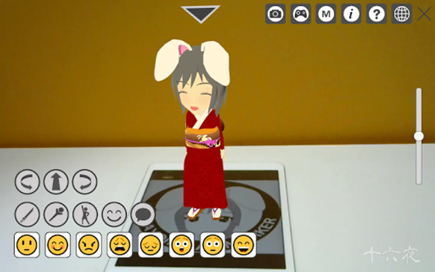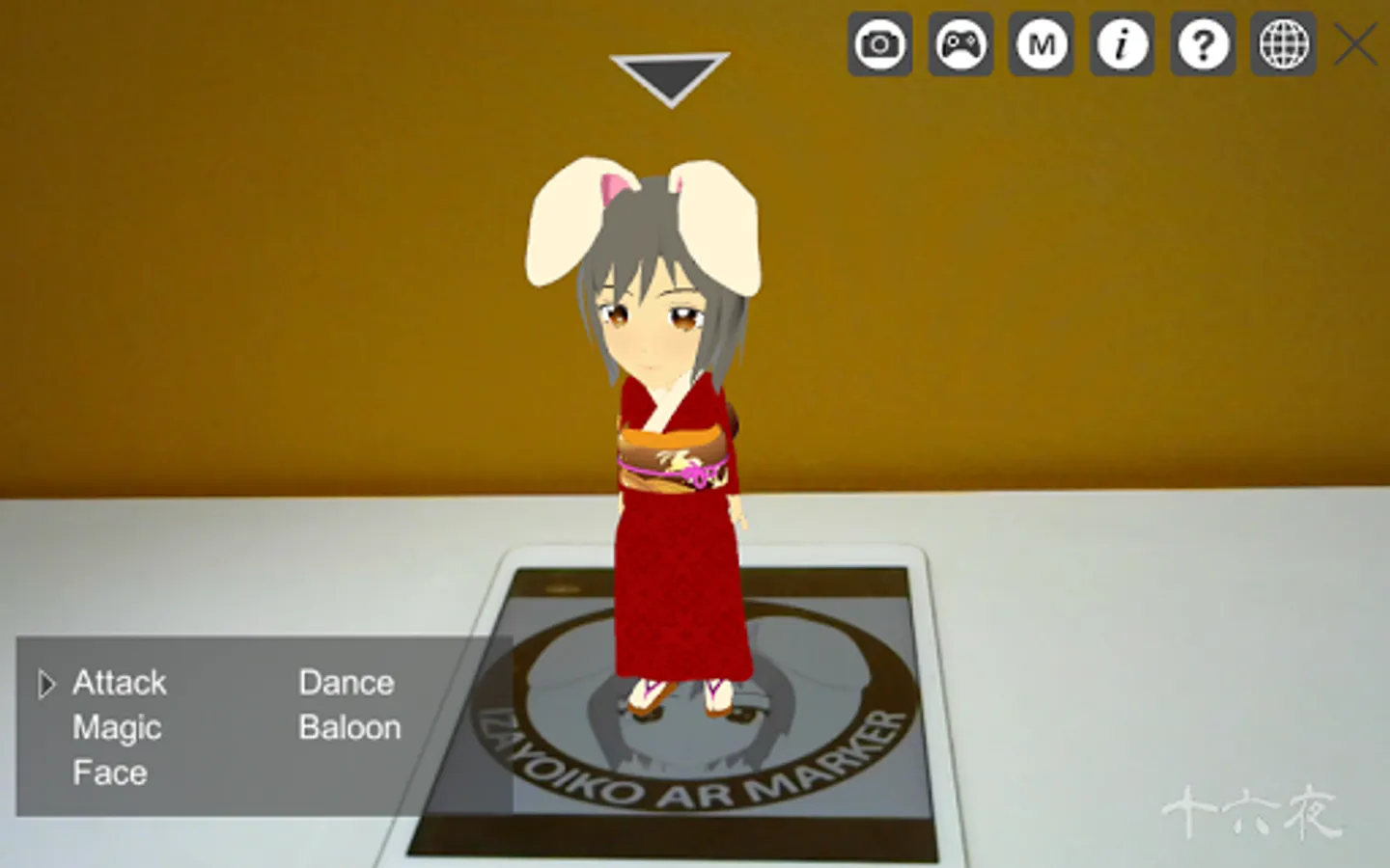On the screen projected by the camera, "Izayoiko" appears as an augmented reality (AR).