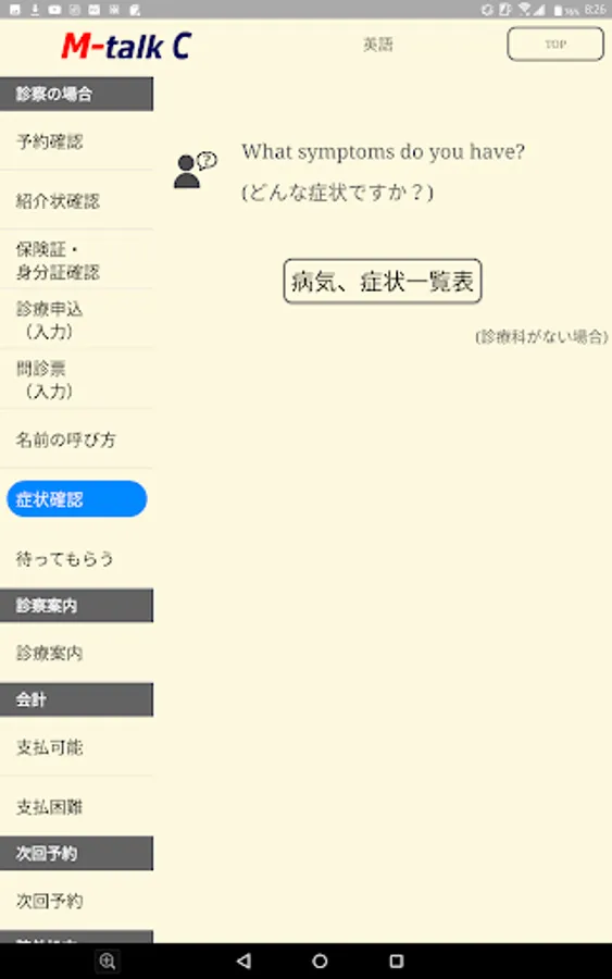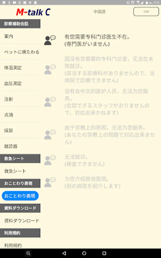 Foreign patients corresponding medical translation Android App