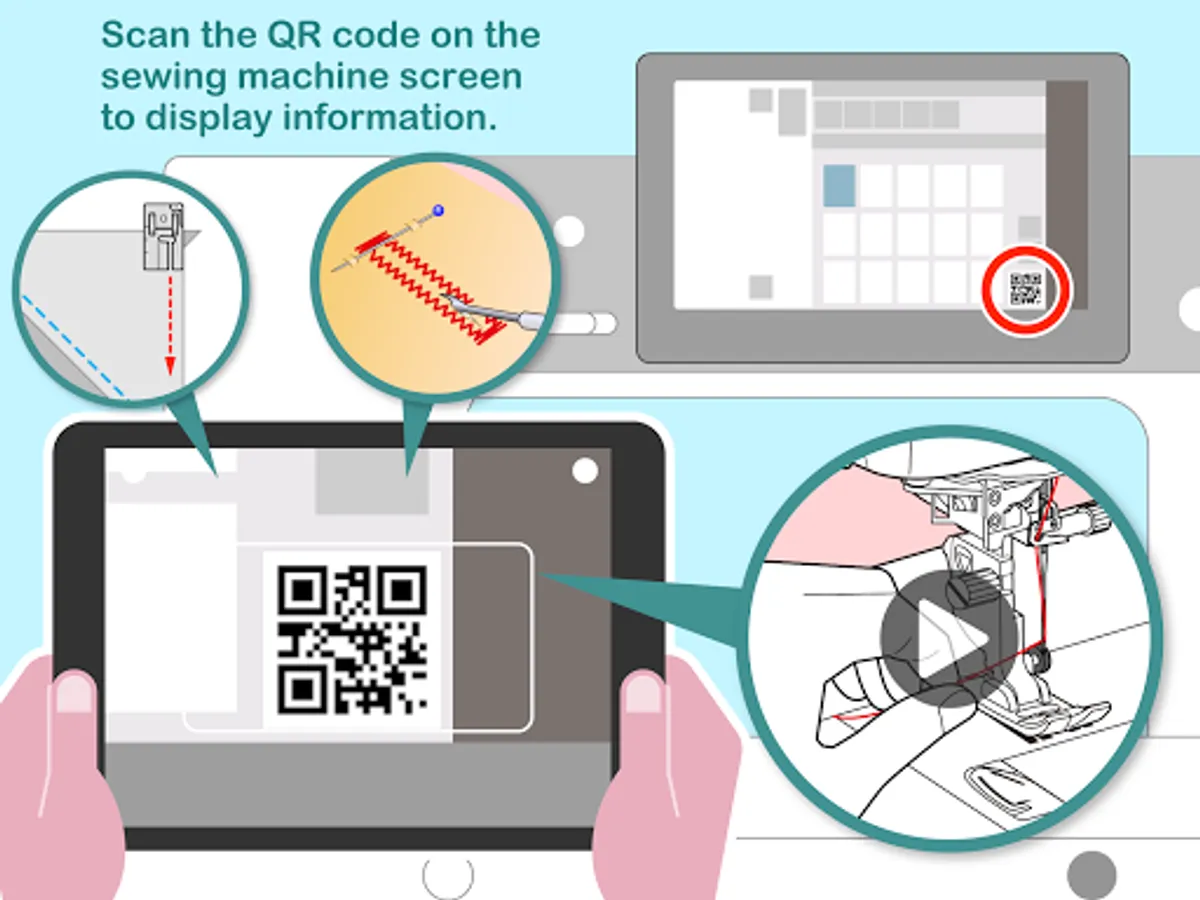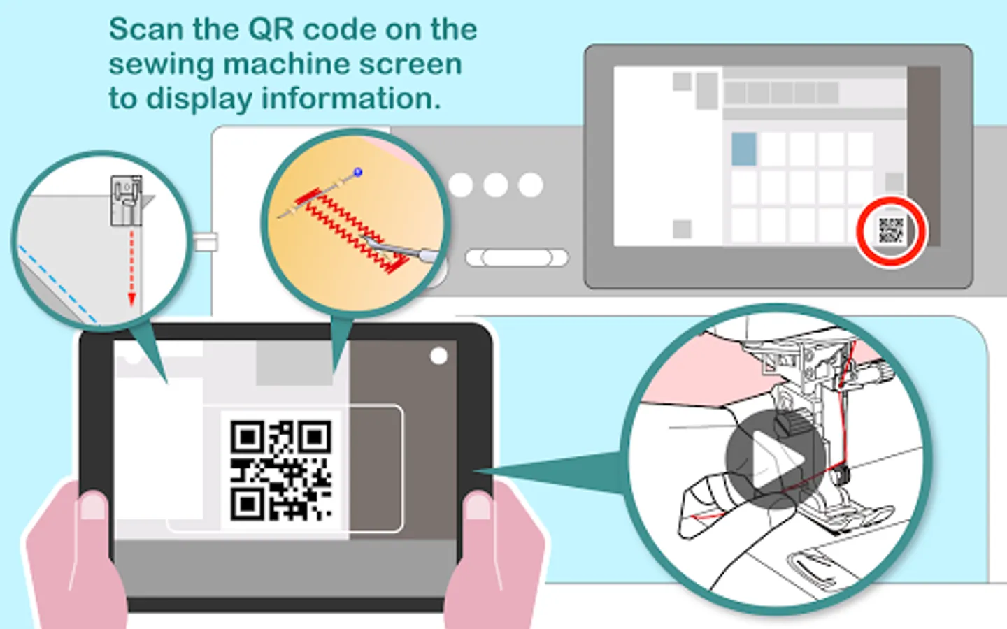 Read the QR code displayed on the sewing machine screen with AcuSpark and all your questions will be answered.