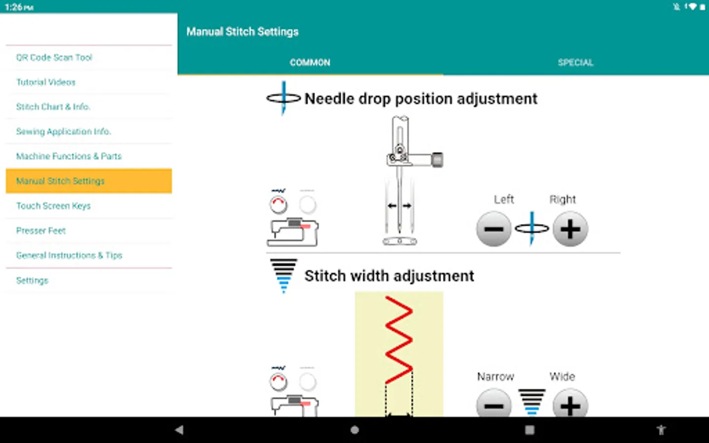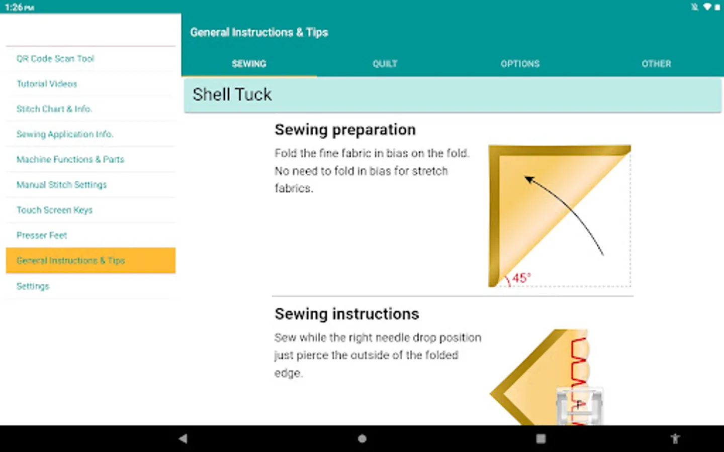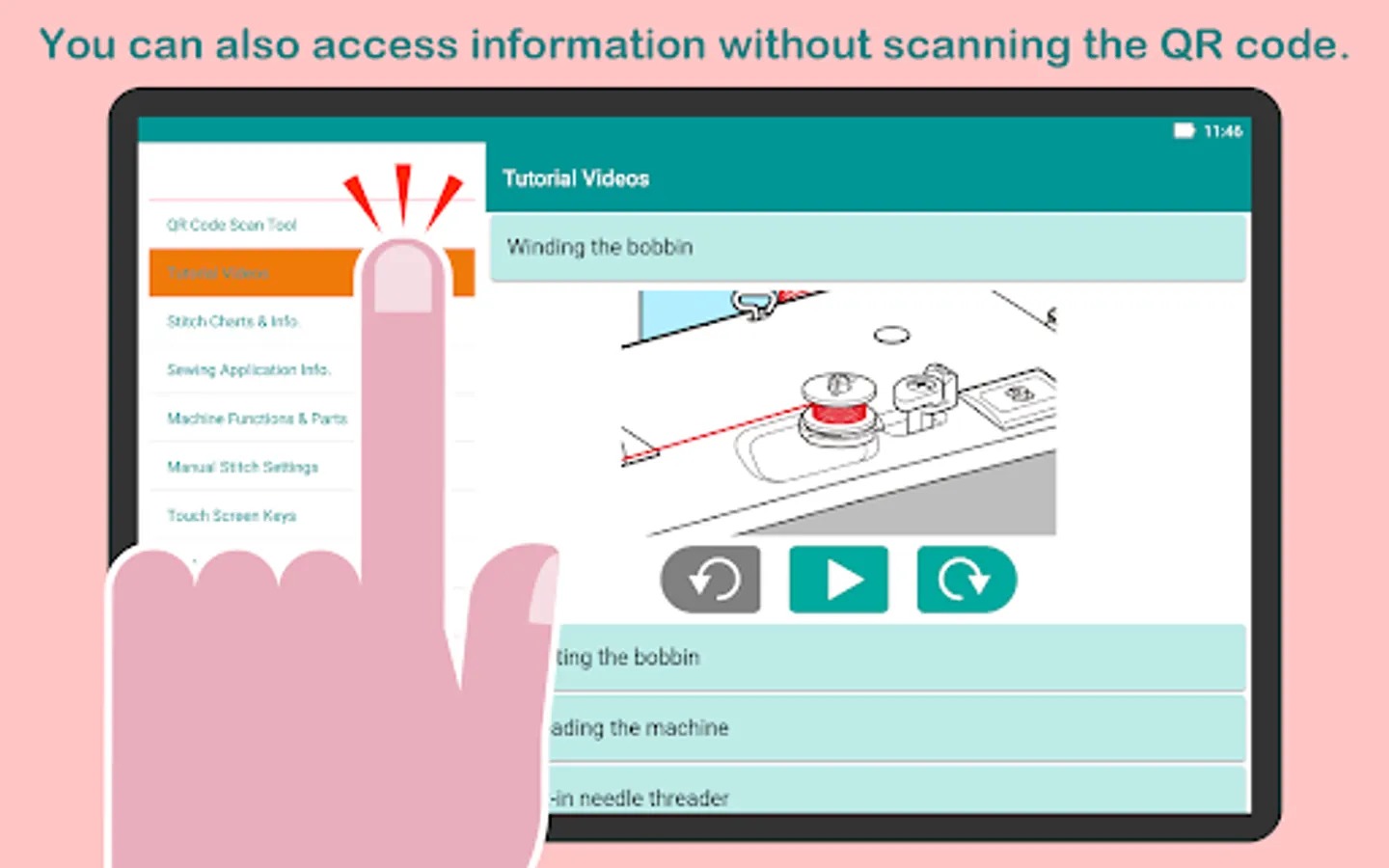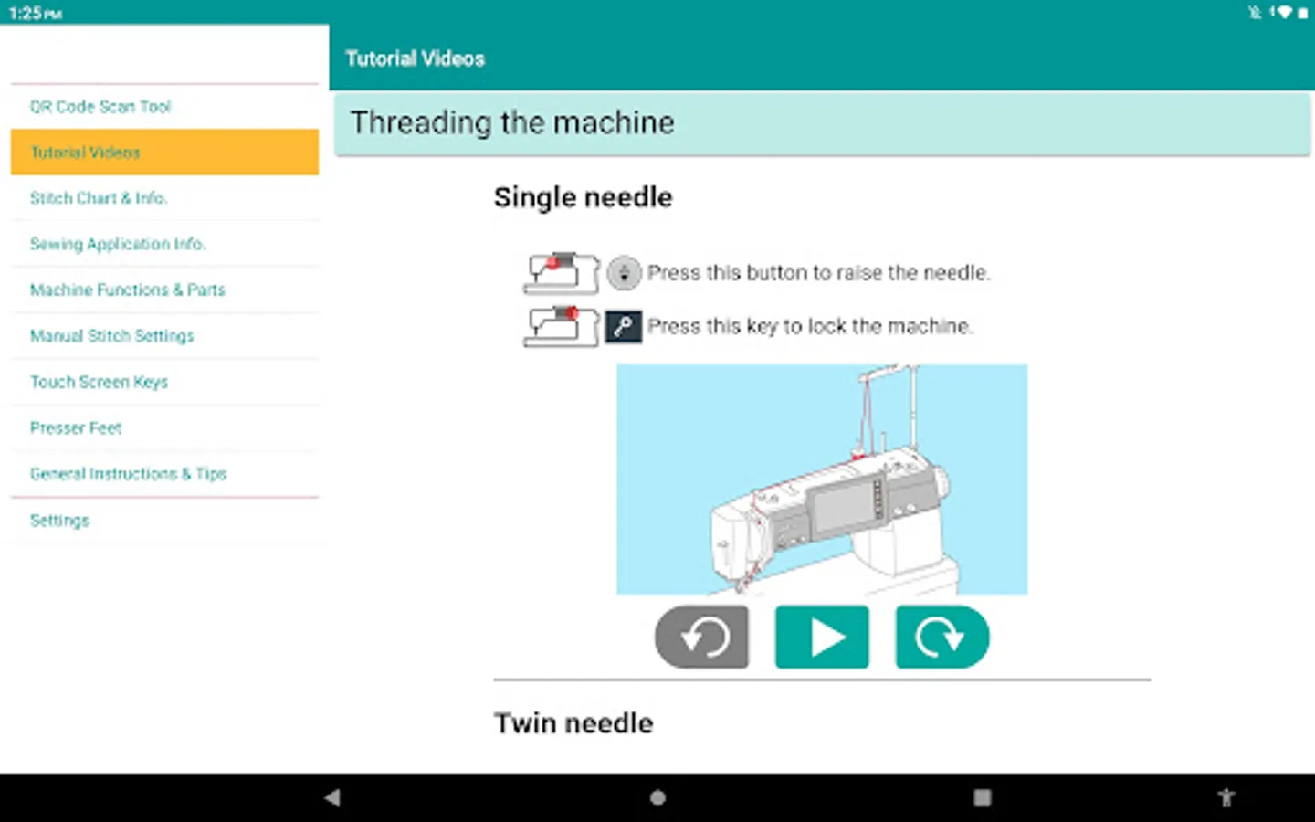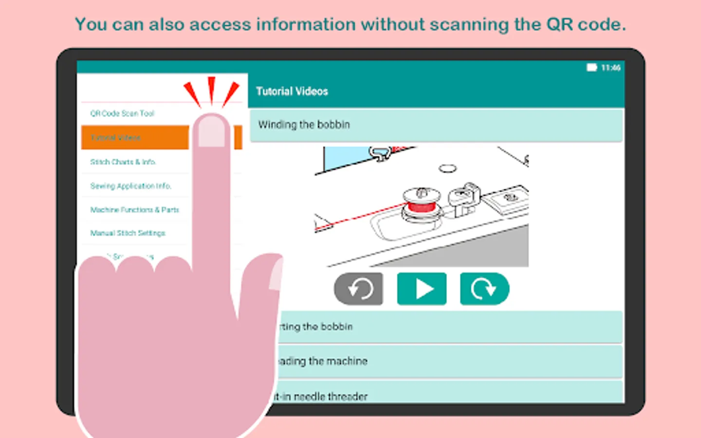 AcuSpark is an app that explains how to use the sewing machine and provides useful tips.