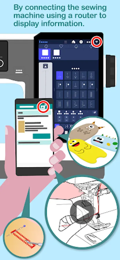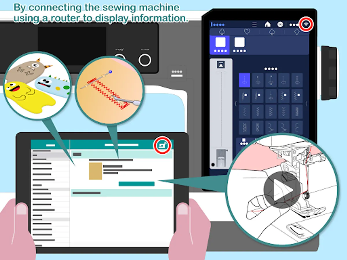 * By connecting the sewing machine and app using a router, instructions and know-how related to the status of the sewing machine appear in the app.