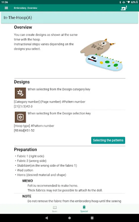 * Step-by-step illustrative videos for learning special sewing methods are available.