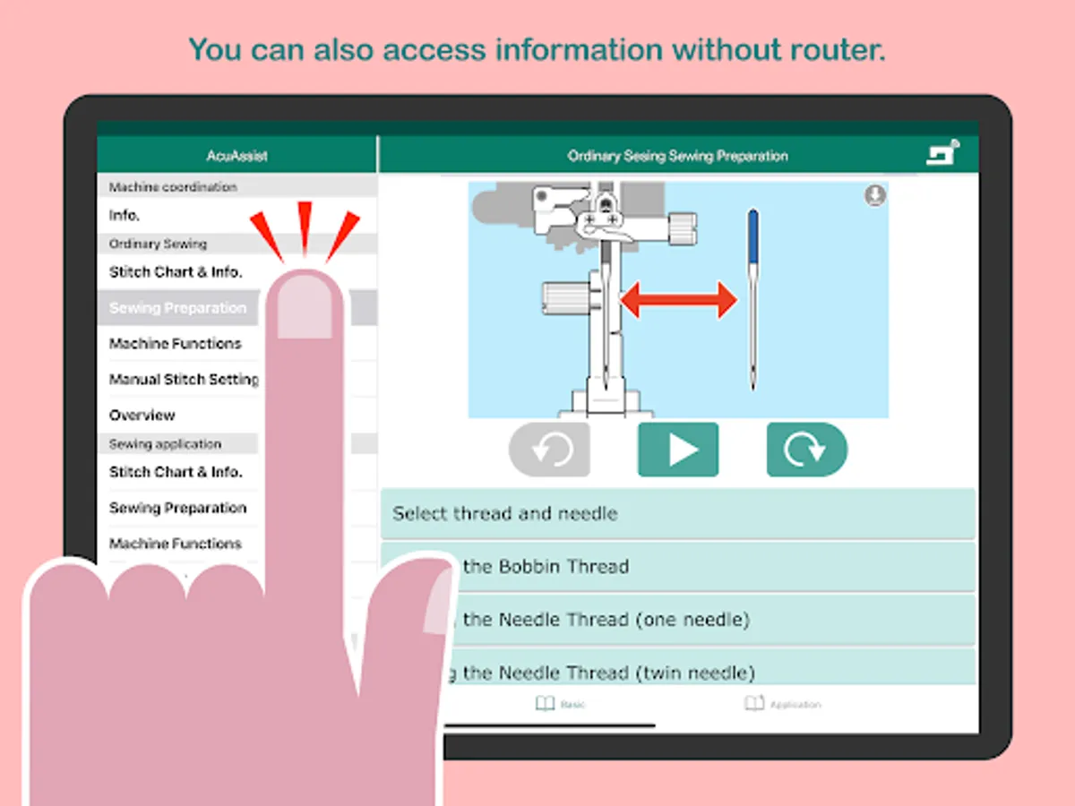 AcuAssist is an app that explains how to use the sewing machine and provides useful tips.