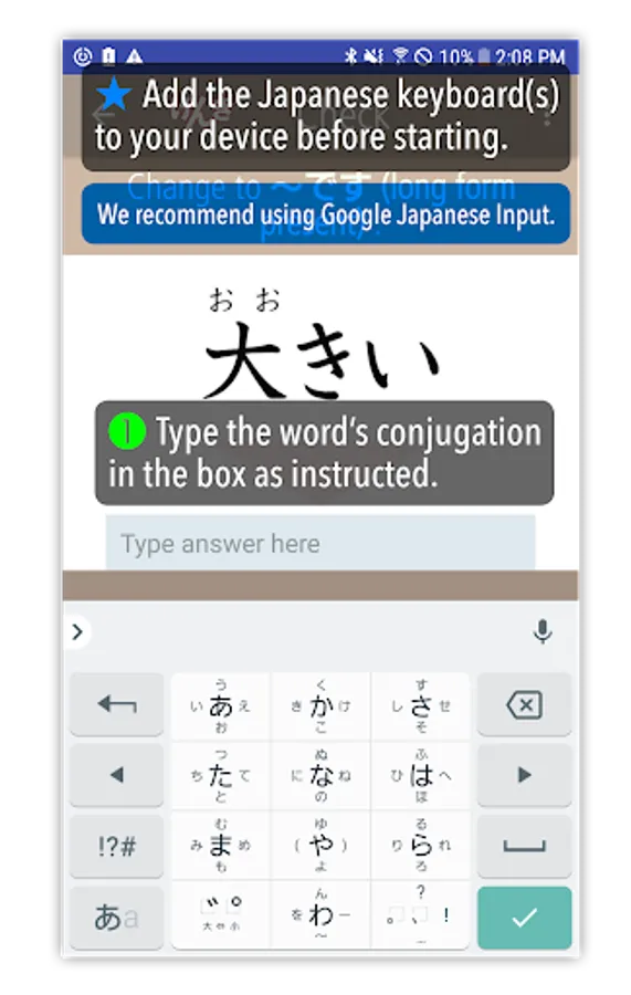 *To study with the Check method, you will need to add a Japanese keyboard to your device before starting. (We recommend using Google Japanese Input.)