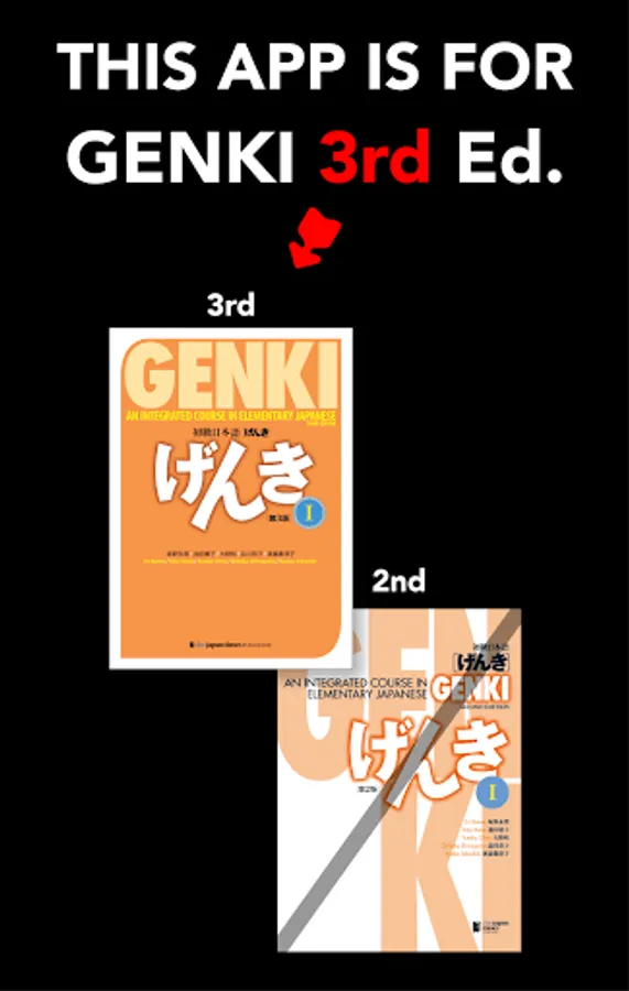 *This is for the 3rd edition of GENKI. If you are using the 2nd edition of GENKI books, please purchase the app "GENKI Vocab Cards for 2nd Ed."