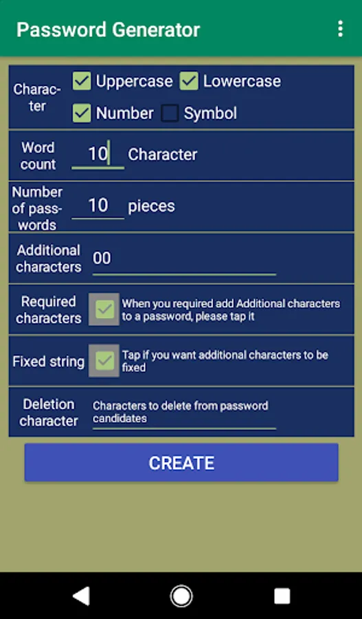 - Characters to be added to the password candidate and characters to be added to the password are always distinguished. Therefore, if you want to create passwords with patterns with and without additional characters, or when you want to include letters in your passwords certainly, variations to create passwords will increase.