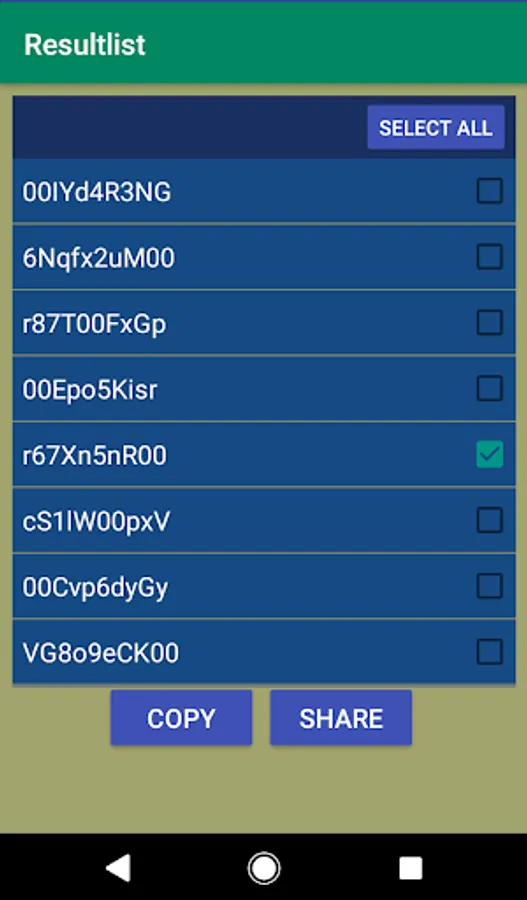- After pressing the password generation button, you can select a password from the password list and share it with other applications.