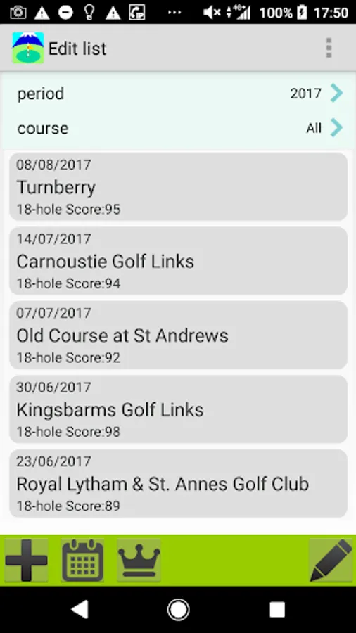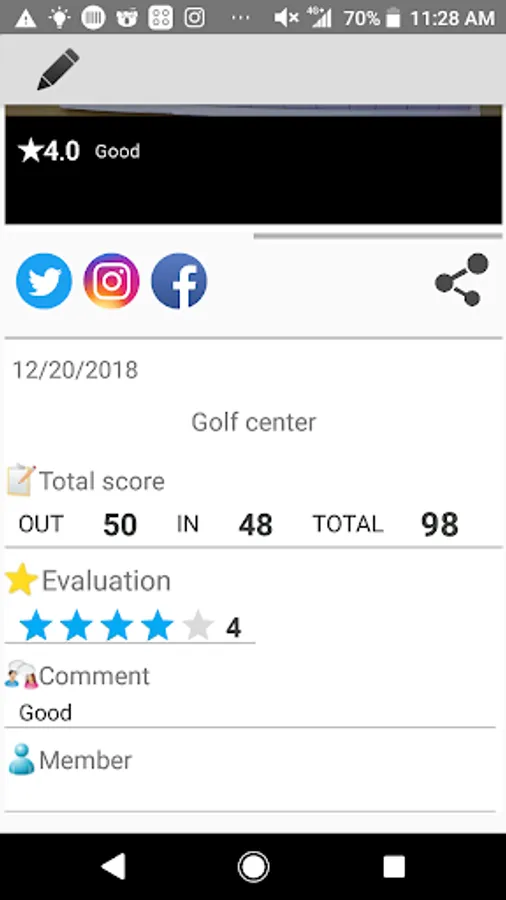 - Input detailed information input (golf course name, half or full course, total score, members, comments, impressions, status, etc.)
