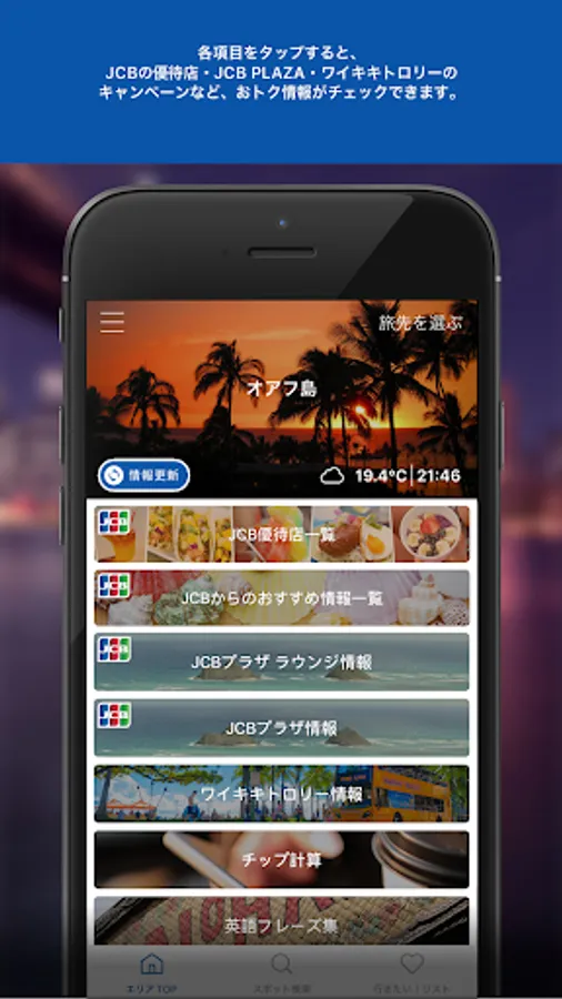 ◇◇Overseas travel guide app (free) that introduces special offers unique to JCB that can be used in Hawaii◇◇