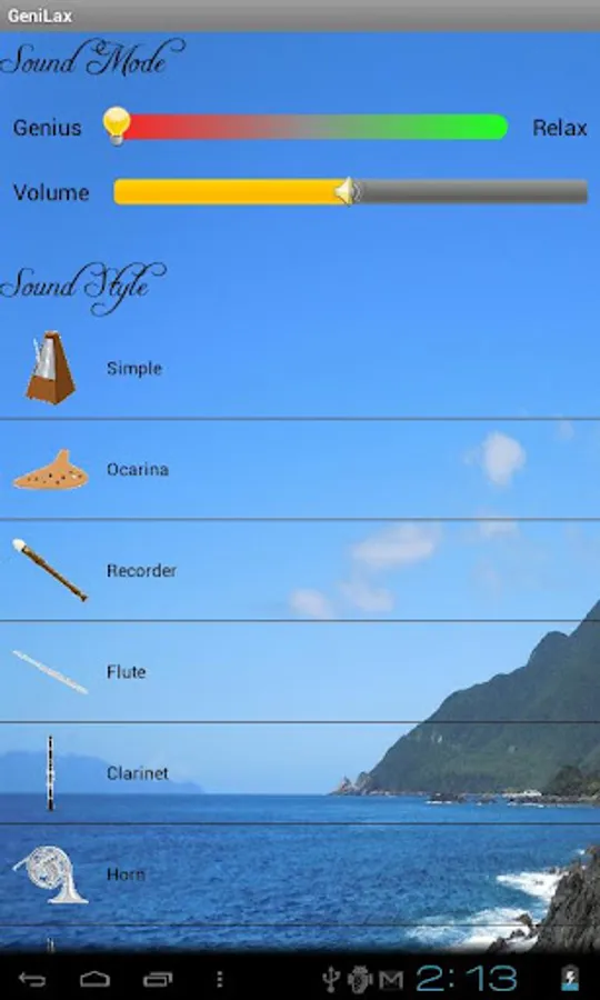 Listen to GeniLax (Genius and Relax) by earphone or headphone when you want to relax or focus (study, work at your desk or on a computer, while training for a sport, etc).