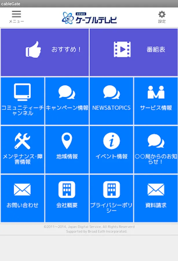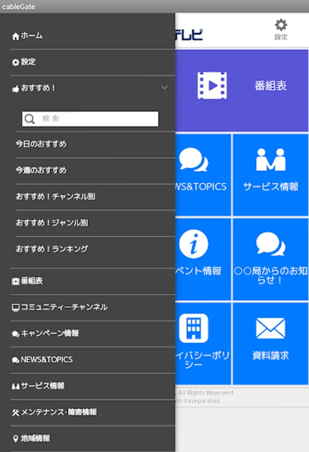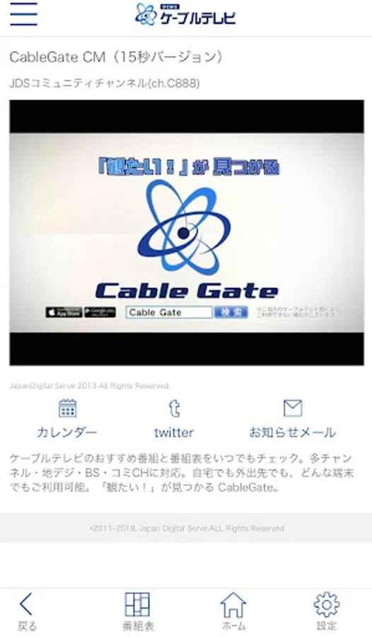 全国のケーブルテレビ局のおすすめ番組と番組表をいつでもチェックできるCableGateのAndroidアプリです。