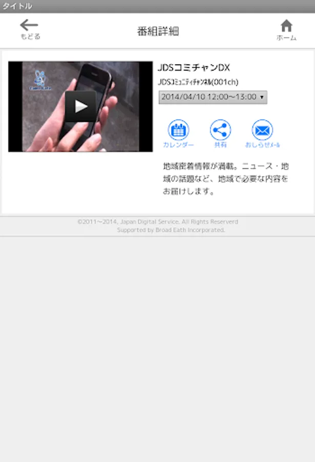 便利な機能も充実しています。 おすすめ!や番組表から気になる番組を見つけたら、TwitterやFacebookなどで共有したり、カレンダーアプリなどにスケジュール登録ができます。