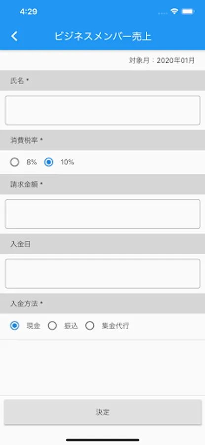The books that can be created are "Business member sales table", "General sales table", "Esthetic sales table" and "Expense book". If you have a smartphone, invoices, receipts, passbooks, etc., you can easily create books on the spot, so please download the app and use it. * To use the app, you will need the ID and PW issued by Nakamura Accounting Office. Also, the ID and PW are different for each person.