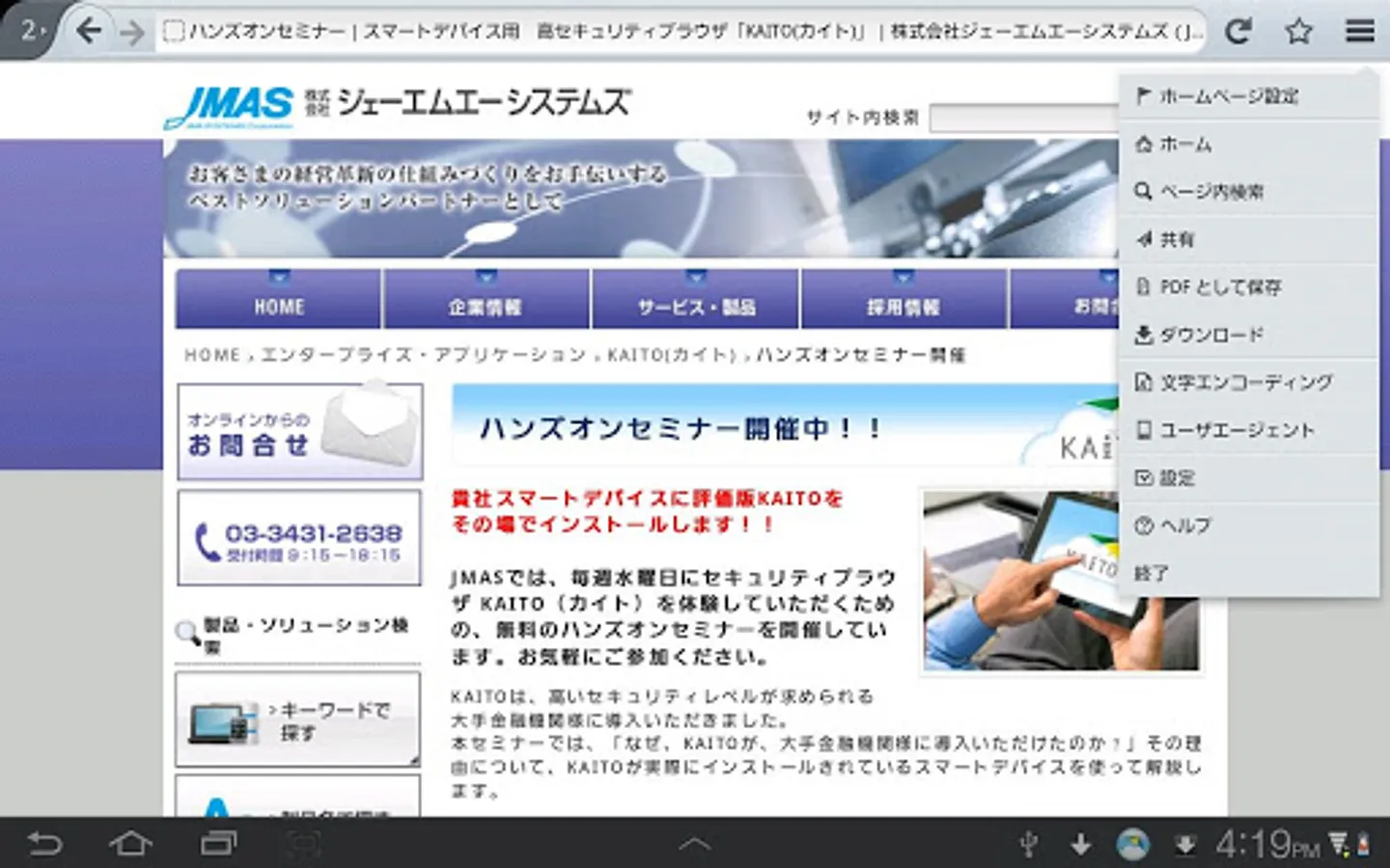 "KAITO" is a security browser provided by JMA Systems Inc. of the Japan Management Association Group.