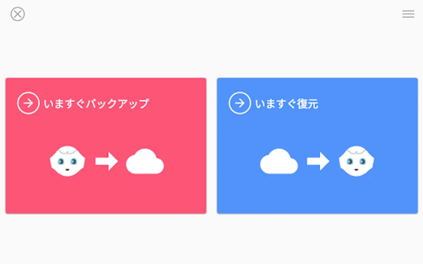 You can backup / restore Pepper's data (user registration information, cocogrami, photos / movie data, saved data of applications delivered by SoftBank Robotics etc).