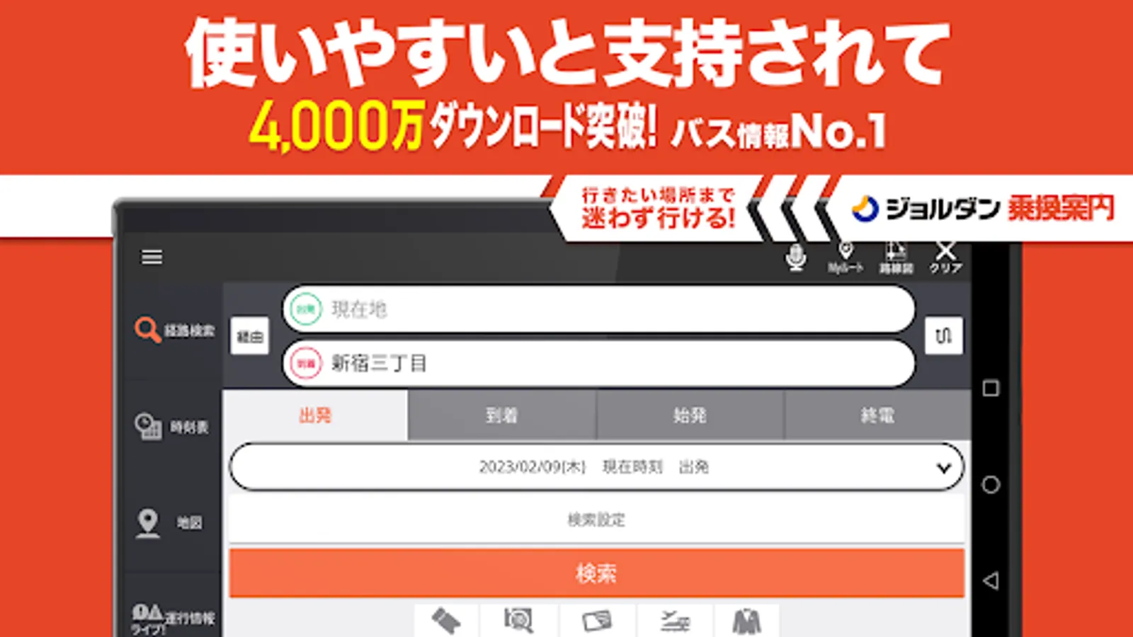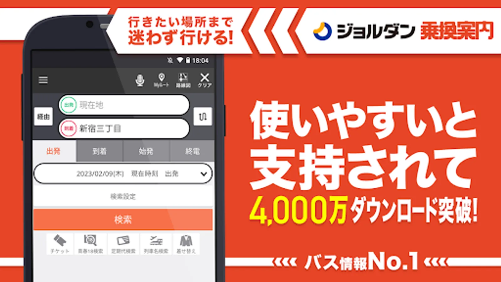 [Jordan Transfer Guide Plus] is an app that greatly enhances the function of the popular route search app "Transfer Guide" with a cumulative total of 40 million downloads (*). (* Android version, iPhone version total)