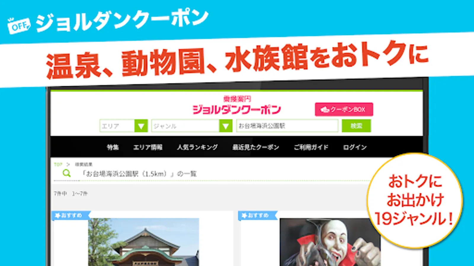 ・ Offer discounts and benefits for hot spring facilities, zoos, aquariums, etc. "Jordan coupon" that you can go out for a great deal.
