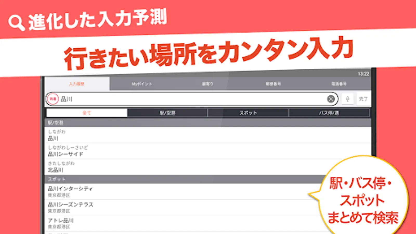 ・ Evolved station / bus stop / spot input Candidate prediction function and nearest station / destination search using route map make input easy!