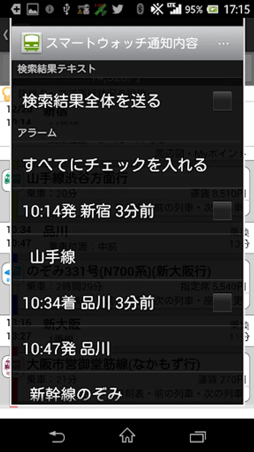 10 minutes before the departure station, one minute before the transfer station, I can also be set individually notification time of three minutes ... before the arrival station.