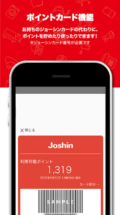 You can accumulate and use points by presenting apps instead of your existing Joshin card.