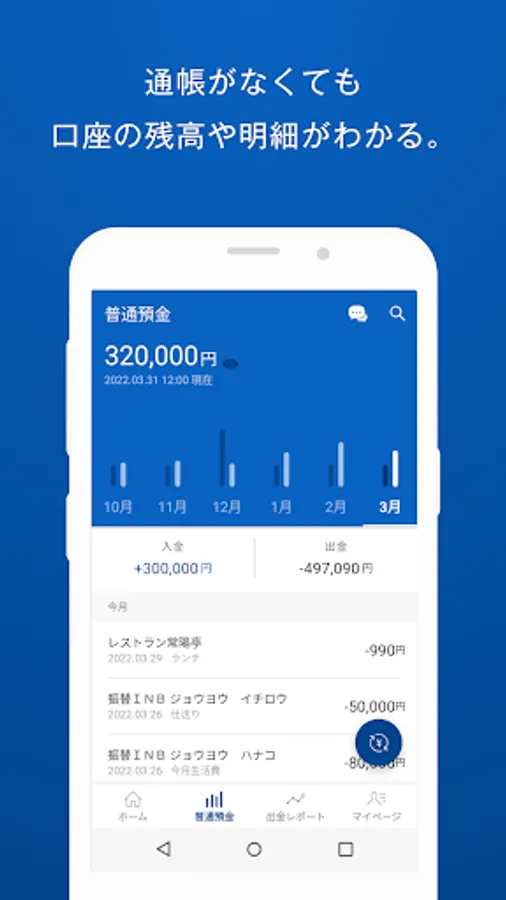 ○ Inquiry about ordinary account balance and deposit/withdrawal details, display deposit/withdrawal graphs