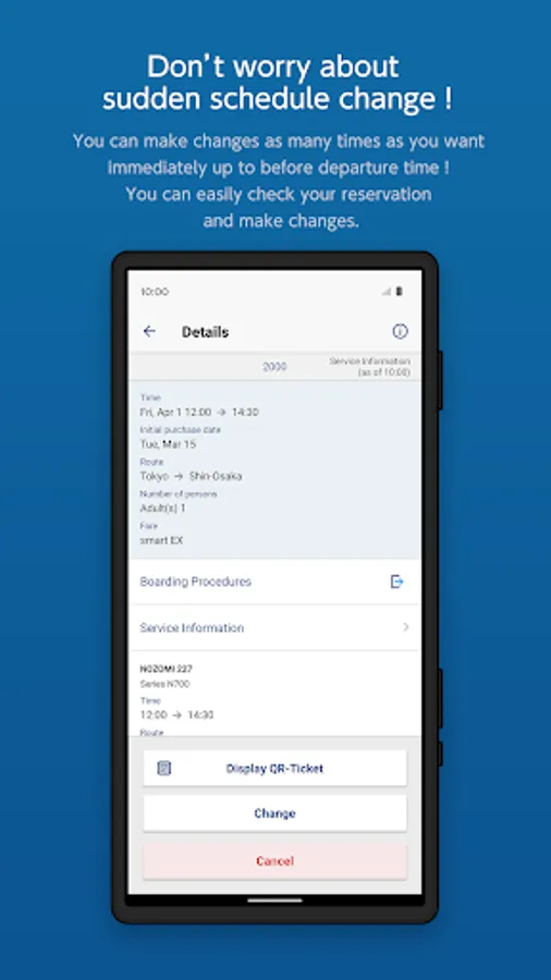 - Purchase ticket/Reserve seats (time designation, train name designation, easy free seat reservation))