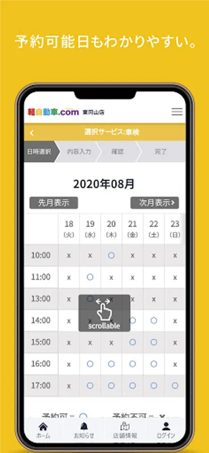 Light car.com Higashi Okayama store Official car inspection reservation app. You can see the reservation date at a glance!