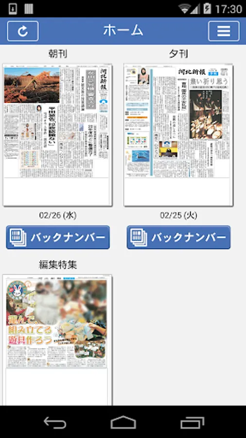 ・東北の代表紙河北新報の新聞紙面を閲覧できるアプリです。