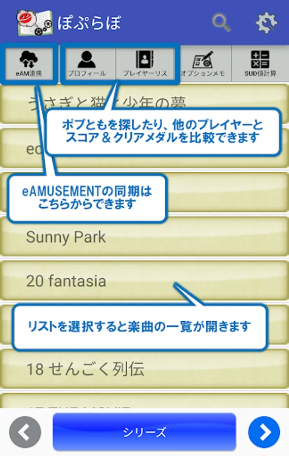 This application can manage your clear medals and score of the arcade game "pop'n music".
