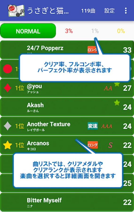 ■ Statistically displaying Clear medals (by series / level), and Sharing to SNS.