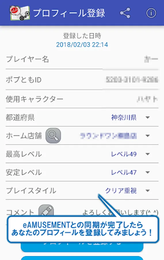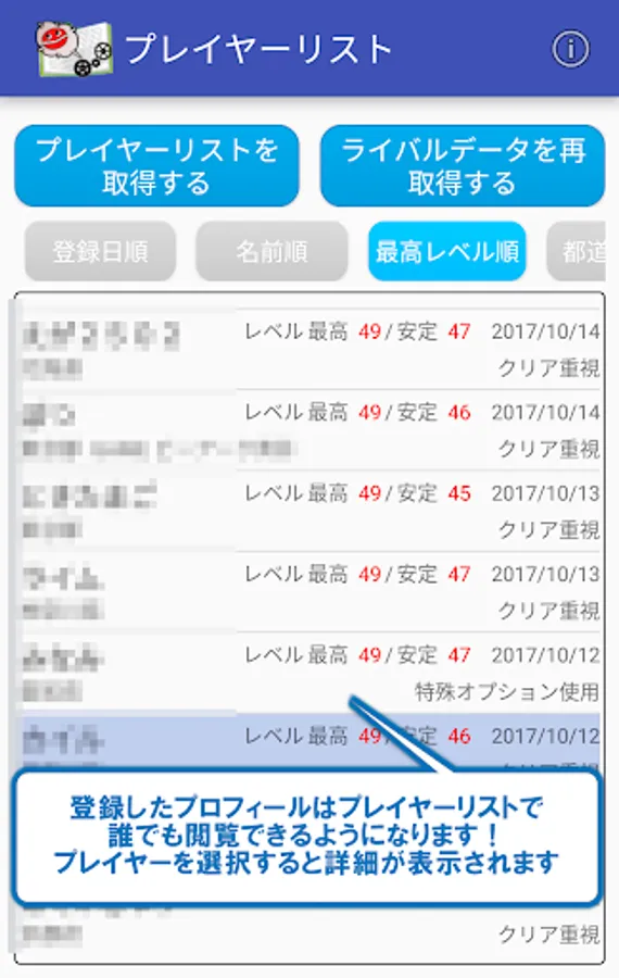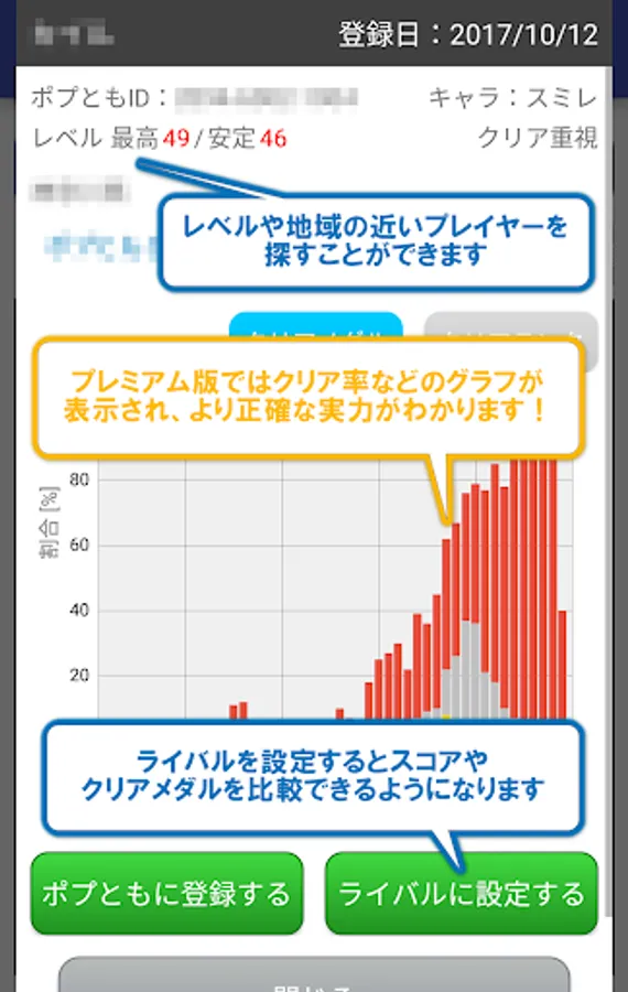 ■ Player list (Easy registration of POPTOMO & score / clear medal comparison function)