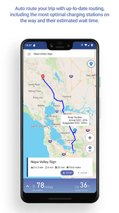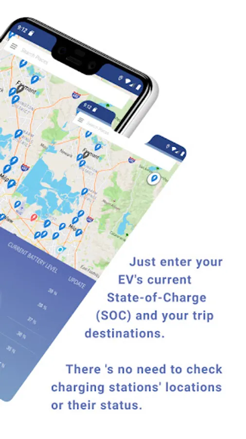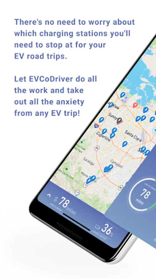 The EVCoDriver is a navigation app specialized for electric vehicles (EVs) to reduce range anxiety and charging anxiety for your road trips. Range & charging anxiety is the fear that you may be stranded due to insufficient energy and also the uneasiness that you may encounter long waiting queues and charger malfunction at charging stations. The EVCoDriver allows you to easily start your road trips just by inputting your current battery level (state of charge) and your destinations without checking locations and availability of charging stations. It will auto-route/reroute the shortest time path with lower energy consumption from start point to destinations via available charging stations where short wait times are expected, based on your current battery level and car charging requirements. You no longer have to make a charging plan before starting your trip or worry about how you intend to reach destinations during the drive beyond your car's single charge limits and can arrive with peace of mind and power left over.