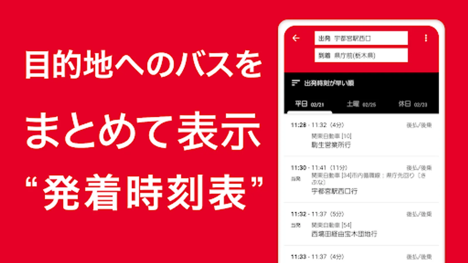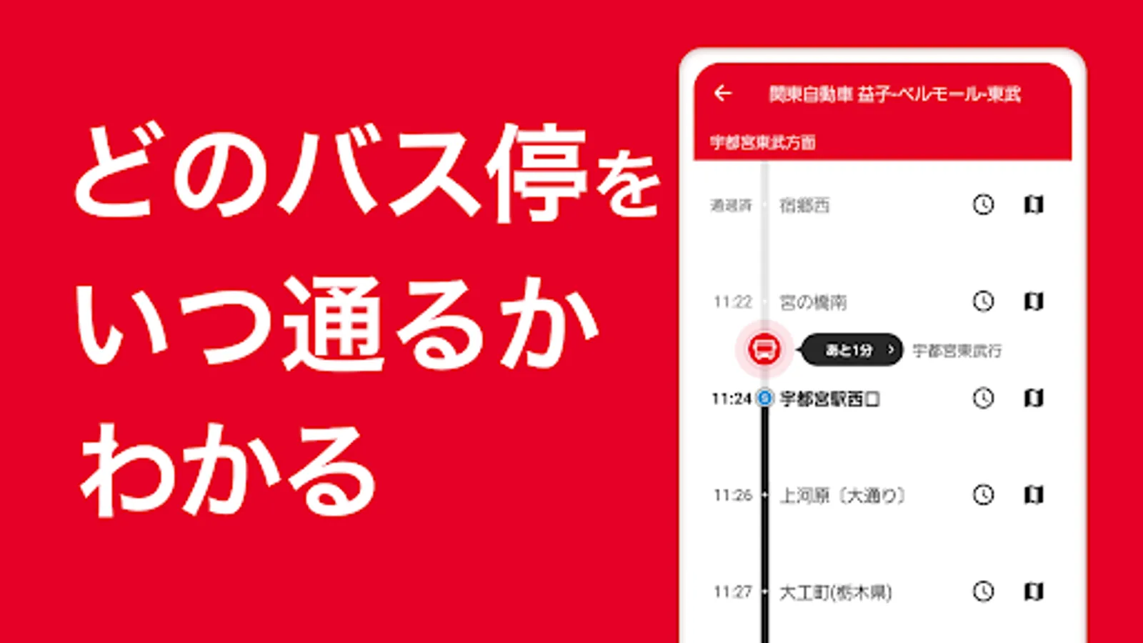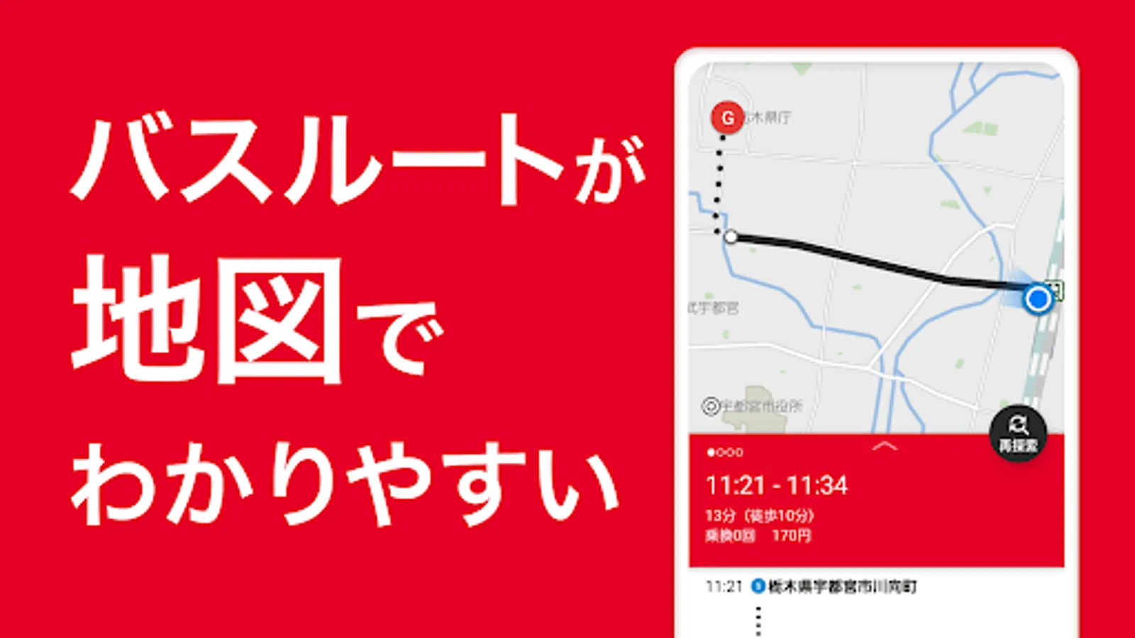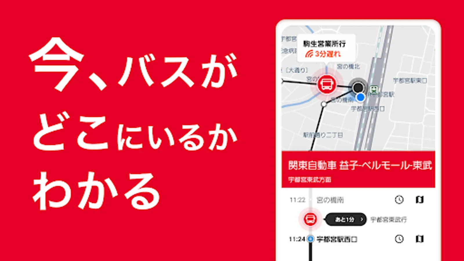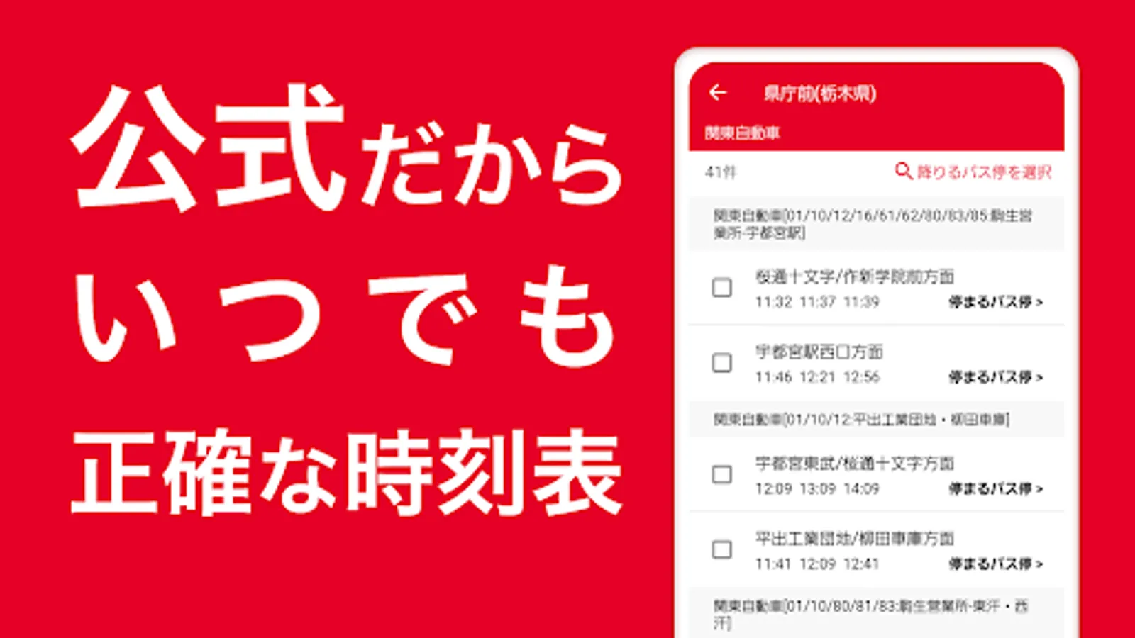 More convenient, comfortable and easy to understand bus transportation in Kanto Automobile. It is an application that allows you to see various information at once, such as timetables, transfer information, approach information and operation information.