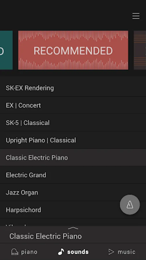 PianoRemote allows various functions of the digital/hybrid piano to be easily selected.