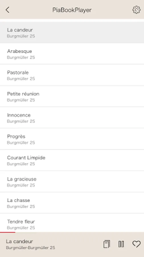 Select the lesson song/practise piece you wish to listen to using the familiar music player app interface.