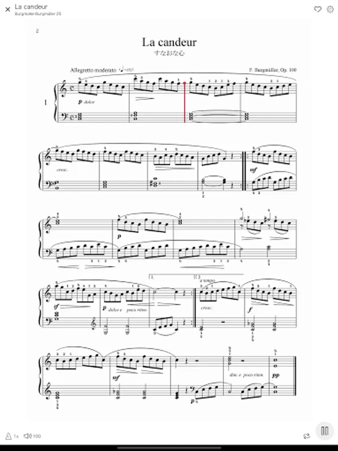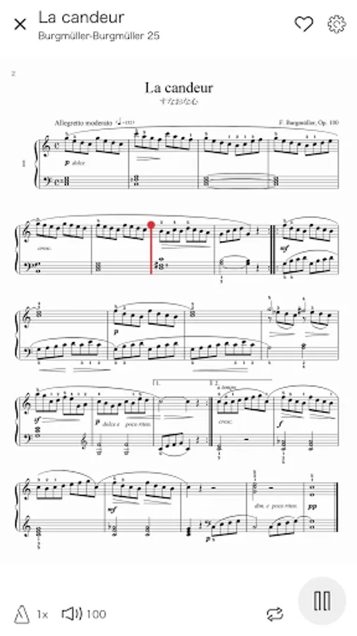 Tap a bar on the score to specify the play position or playing range. Once the start and stop points are set, the passage will repeat continuously until stopped.