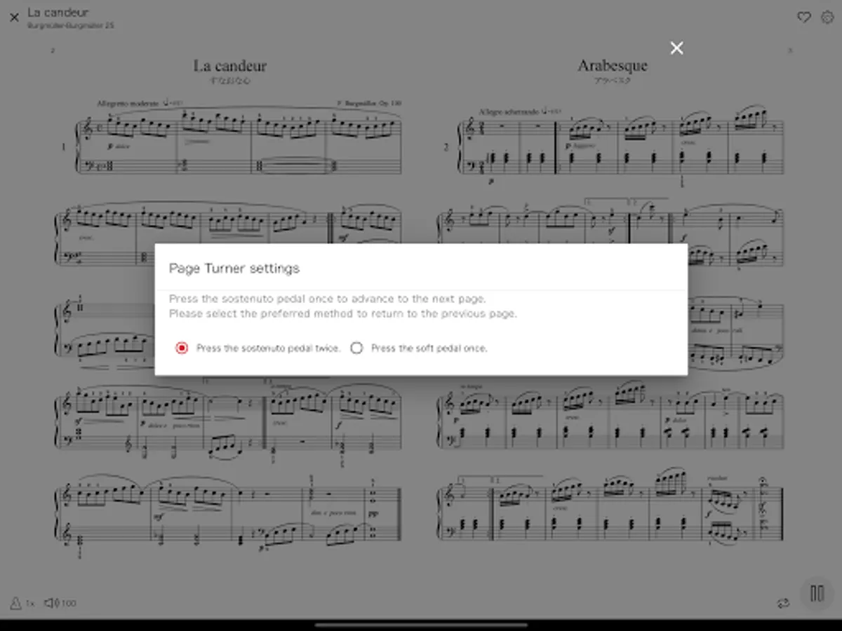 Turn pages of the musical score using the sostenuto or soft pedals, allowing players to concentrate on their performance.