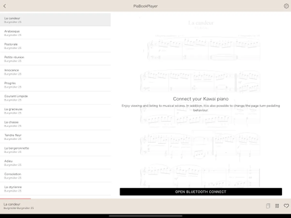 PiaBookPlayer takes advantage of the wireless Bluetooth MIDI feature built into many Kawai digital pianos, allowing players to enjoy listening to classical pieces and viewing their musical scores from the comfort of an armchair.