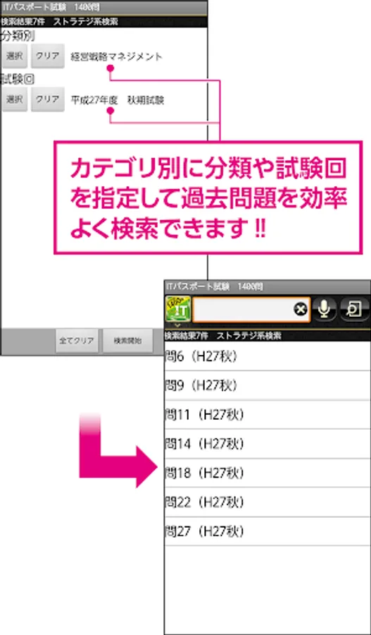 Take advantage of the rich search function of this app to overcome your weaknesses and aim to pass!