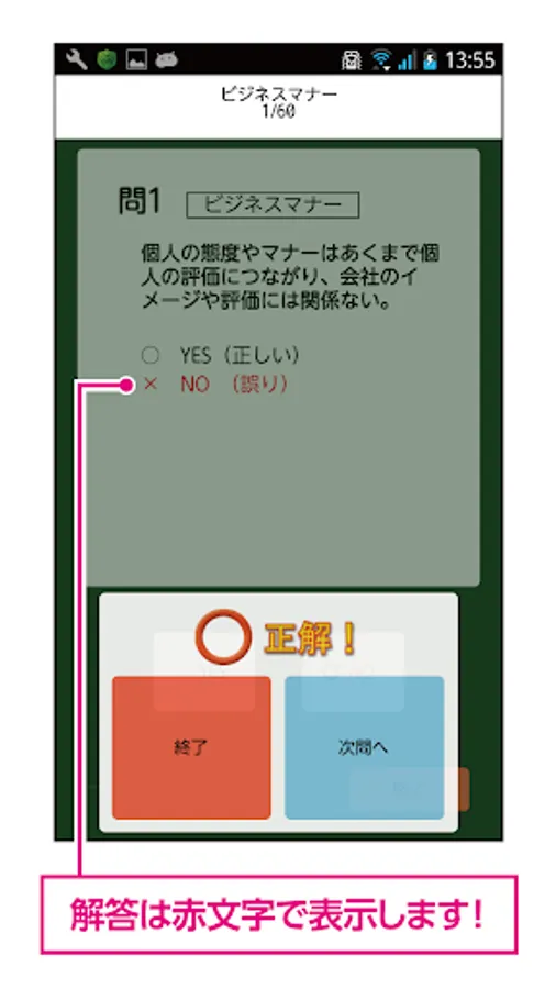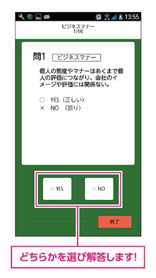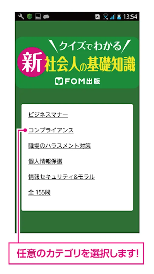 With this app, you can check and learn essential knowledge (business etiquette, compliance, handling of personal information, information morals & security, workplace harassment) as a member of society. Let's acquire the attitude as a member of society.