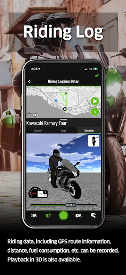 This function enables you to enjoy riding log recorded on the APP in 3D by yourself, family and friends.
