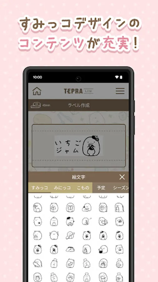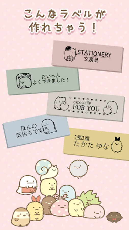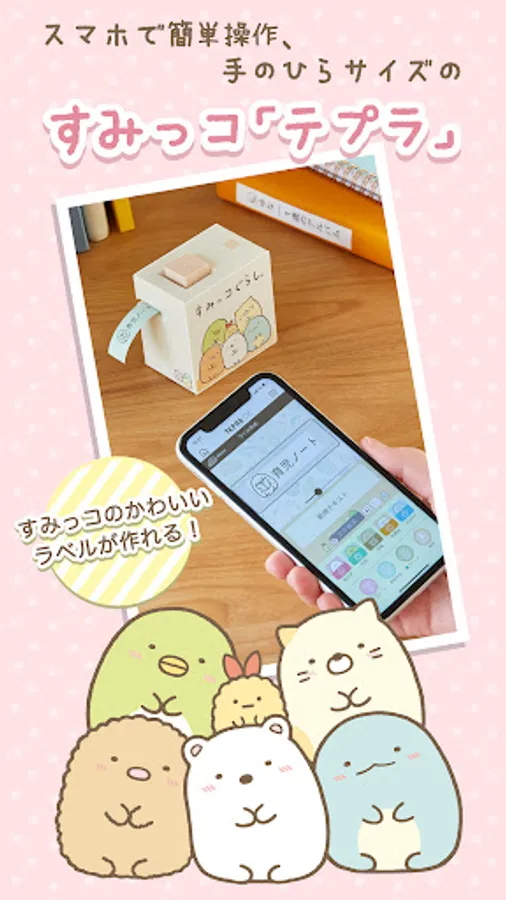 Equipped with pictograms and frames using cute Sumikko Gurashi characters